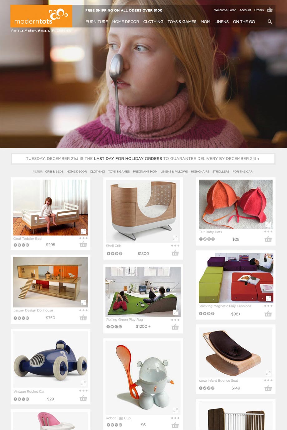 We were commissioned to design a comprehensive website and develop a cohesive brand identity for ModernTots, an upstart retailer of child-centric modern-designed products.